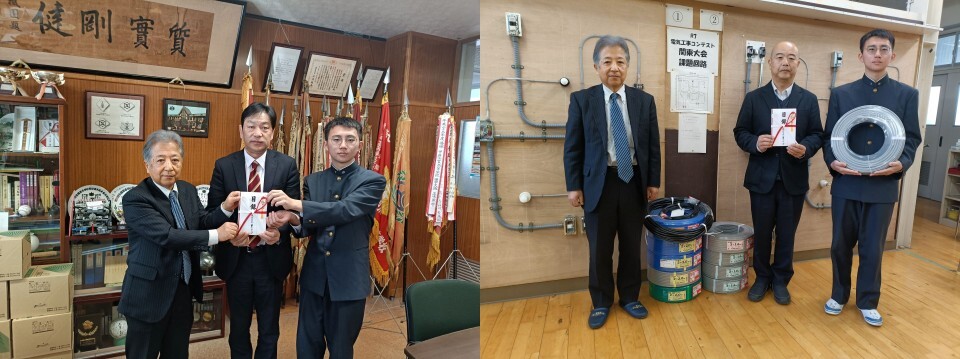 甲府工業高校電気科様は在学中に電気工事士の資格取得を進められておりますが、電材の価格高騰で負担が増えているとのことから練習用電線の寄贈を行いました。